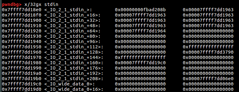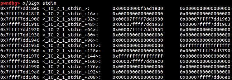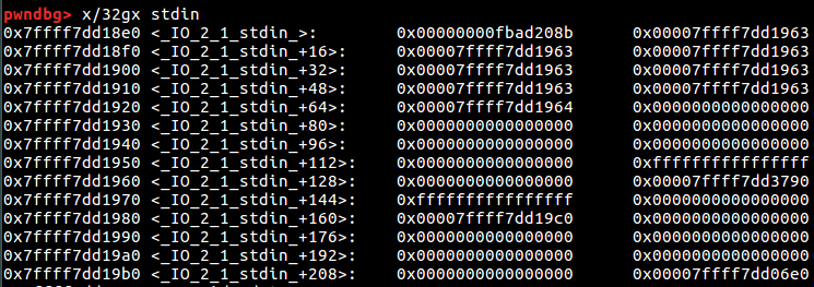 즉, 0xfbad1800 으로 flags 를 변경해 주면 조건문을 통과할 것이다. (stdout 뿐만 아니라, stdin 도 동일하게 적용됨)