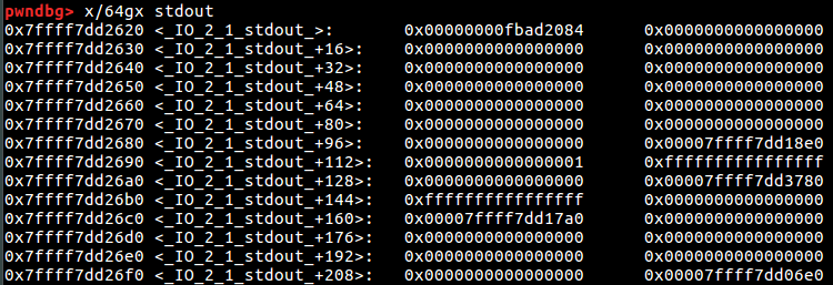 - 따라서 glibc 내부의 임시버퍼에 해당 문자열을 임시로 저장하는 방식을 이용하는데, _IO_2_1_stdout 는 _IO_FILE 구조체 타입이다.
