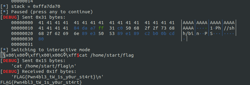 + asm(shellcraft.i386.sh.linux()) 로 했더니 안됬다. 아마 arm 구조라서 그런 것 같다.