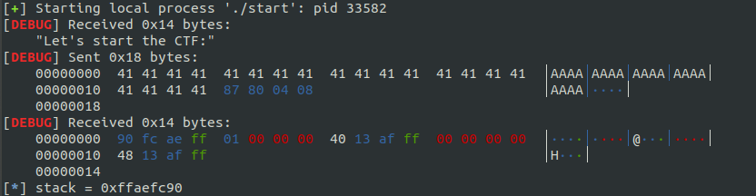 다음과 같이 stack 값이 leak 되는 것을 알 수 있다.
