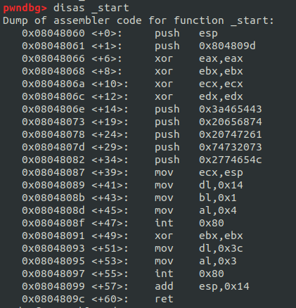read() 로 입력받을 떄, ret 에 write(ecx) 와 같이 함수를 실행시켜 주면 ecx(stack_addr) 이 출력될 것으로 보인다.