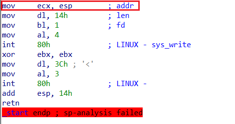 그렇다면 payload = Dummy(20) + (mov_ecx_esp) 를 한번 넣어주면 write(ecx_esp) 가 된다.