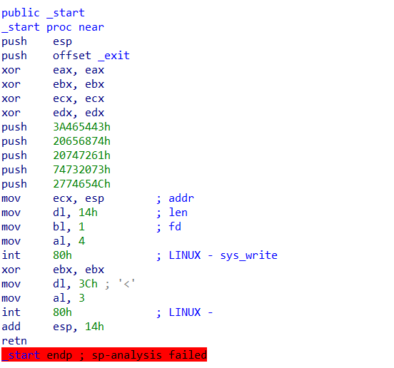 첫 문제부터 main 함수가 없어, 결국 ida 로 봤더니 다음과 같이 나왔다.