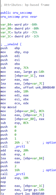 그렇다면 orw_seccomp() 함수가 뭔지 확인해보자.