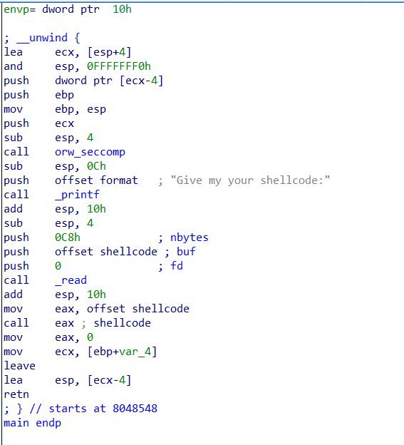 breakpoint = {'orw_seccomp':0x080484ce,'after_read':0x08048582,'before_read':0x0804857d}