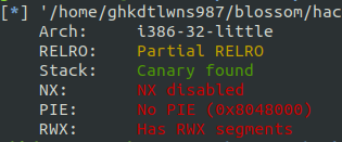 보호기법으로는 NX-bit 가 비활성화 되어 있는 것으로 보아, 쉘 코드를 넣어주면 될 거 같다.