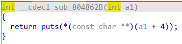puts() 함수의 실제주소가 출력된다. 이유는 코드가 (*(const char **)(a+ 4) 를 호출하기 때문이다.