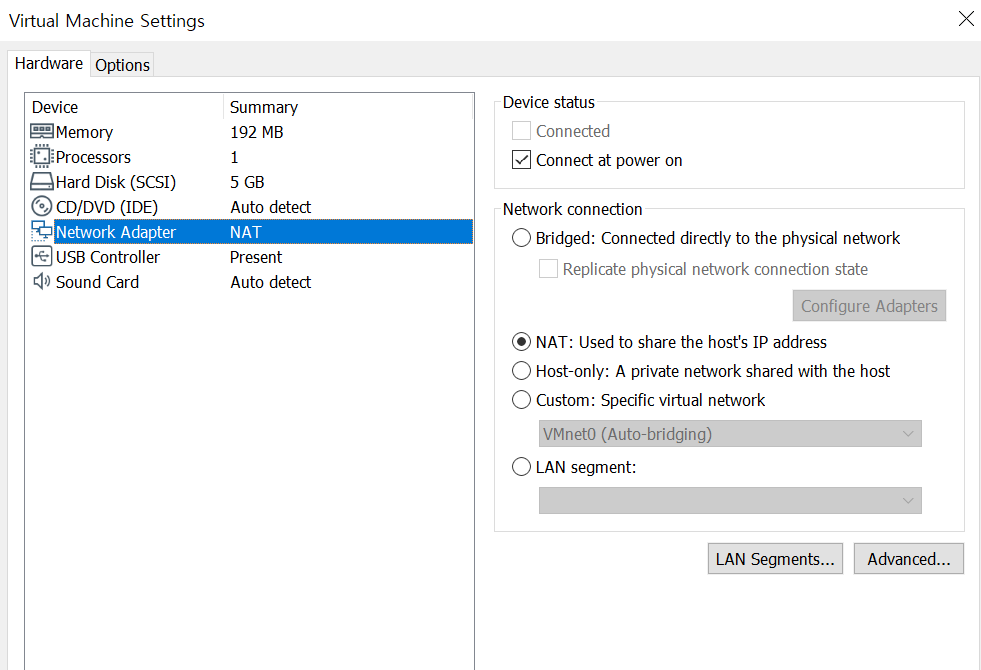 실습을 진행하기 앞서, Vmware 에서 NAT 설정을 꼭 해주어야 한다.